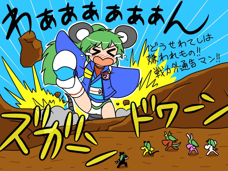 今回「夜四鼓ちゃん5周年だし、そうだ戦隊でいこう!」と決めた当初は、単に色違いの夜四鼓ちゃんを5人並べるだけ・・・みたいなノリだったものの、イマイチ絵的に面白みがなさそうだったので、さてどうするかな、と。(どうするどうする、君ならどうする・・・)